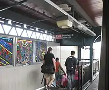The eastern exits are now emergency exits leading to both western corners of Palmetto Street and Broadway, just east of Gates Avenue. These exits were closed in the 1980s due to high crime.[8][9] There is a closed station house around the intermediate level of the staircases.