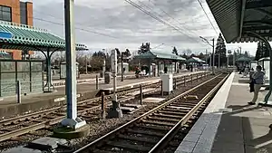 ![]() Looking southeast from the outbound MAX platform in 2018, showing all three tracks | |||||||||||||||||||||