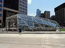 Gateway is a station on the Port Authority of Allegheny County's Pittsburgh Light Rail network,[2] located in Pittsburgh, Pennsylvania. Until October 30, 2009, it was the network's westernmost extent within downtown Pittsburgh. The Port Authority closed Gateway Center as part of construction work on the North Shore Connector project, and a new station opened in 2012 (though its name was truncated from "Gateway Center" to simply "Gateway"). The former station entrance was demolished and a new station was built.[3] Gateway station and North Side station lie at the southern and northern ends of the Allegheny River Tunnel, respectively.