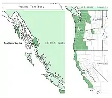 It is found in western Alaska, British Columbia, Washington and Oregon and along much of the California coast. It grows as far north as Baranof Island, Alaska.[3] Western poison oak is a common associate in the California Coast Ranges.[4]
