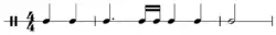In the ball-room the gavotte was often paired with a preceding triple-time minuet: both dances are stately, and the gavotte's lifted step contrasted with the shuffling minuet step. It had a steady rhythm, not broken up into faster notes.[1]