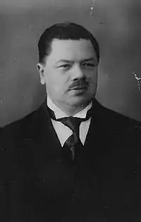 Gavriil Filippovich Beljagin (also went by Gabriel; Russian: Гавриил Филиппович Белягин; 22 April 1870 – 9 August 1936) was a Russian-Estonian politician who was the deputy mayor of Reval (now Tallinn) from April 1917 to September of that year. He was the city's commissioner until he was selected by then mayor Jaan Poska to serve as deputy mayor in April 1917, when Poska went on to become the commissar of the Autonomous Governorate of Estonia. Beljagin oversaw the establishment of Estonian as the official language of Reval. He resigned just before the October Revolution and the start of the Russian Civil War in late 1917.[1] He was succeeded by Voldemar Vöölmann as the chairman of city government. He later died on 9 August 1936 and is buried at Siselinna Cemetery.[2]