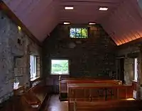 The Millport Chapel was opened and dedicated on 25 September 1976. It was built by the head teacher of wood craft and joiner William Jenkins with help from staff and pupils as a conversion of a stable and barn, with pews and pulpit coming from the East Church in Millport, Isle of Cumbrae. In March 1994 William Jenkins (Jenki) daughter Nicola was married in the Chapel to her husband Alastair Morrison, this was a very proud moment for Bill having built the chapel his daughter got married in. The hand made parquet flooring also made use of recycled oak from pews taken out of East Church in Millport.[10]