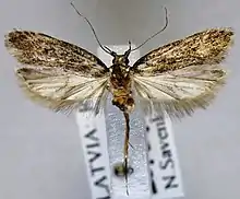 Gelechia rhombelliformis is a moth of the family Gelechiidae. It was described by Otto Staudinger in 1871.[1] It is found from the Netherlands and Germany east to Russia and from Denmark and Latvia south to Austria, Hungary and Romania.