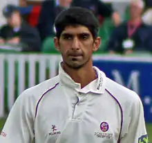 Hussain made his breakthrough for Gloucestershire in 2010, appearing in all but one of their County Championship fixtures. He claimed his maiden five-wicket haul in bowler-friendly conditions at the County Ground in Bristol, taking five wickets for 36 against Northamptonshire.[7] He picked up wickets regularly through the season, and claimed a second five-wicket haul against Middlesex in late April.[8] Hussain finished the season with 67 first-class wickets, the second highest total in the County Championship, and the highest by an England qualified player.[9][10] At the end of the season, Hussain rejected the offer of a new contract from Gloucestershire, stating that he wanted to play in the first division of the County Championship. He signed a three-year contract with Somerset in late October, joining his former Gloucestershire teammate Steven Kirby.[11]