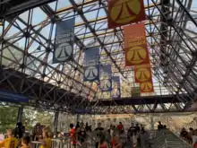Gemini is a racing roller coaster with a wooden structure and steel track, located at Cedar Point in Sandusky, Ohio. Built in 1978 by Arrow Dynamics and designed by Ron Toomer, it is one of the oldest roller coasters in the park. When the ride opened, it was marketed as the tallest, fastest and steepest roller coaster in the world.[1] All three record-breaking claims were falsely made as other coasters around the world already beat Gemini. The all-steel Loch Ness Monster at Busch Gardens in Williamsburg, Virginia, opened earlier that year before Gemini and was taller but had a shorter drop.[2] Screamin' Eagle at Six Flags St. Louis opened two years prior to Gemini and was faster at 62 mph.