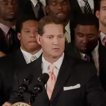 Eugene C. Chizik Jr.[1] (born December 28, 1961) is an American football coach who is currently the Assistant Head Coach for Defense at North Carolina.[2] A veteran of the coaching ranks, Chizik previously was UNC's defensive coordinator for the 2015 and 2016 seasons, and served as the head coach of the Auburn football team from 2009 until the end of the 2012 season.[3] Chizik's 2010 Auburn Tigers football team completed a 14–0 season with a victory over Oregon in the BCS National Championship Game, and quarterback Cam Newton won the Heisman Trophy. Chizik played college football at the University of Florida in 1981 for head coach Charley Pell.[4]