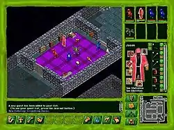 Players create a character and travel around Sucia Island, a location Barred to the members of the player character's sect. Whilst searching for a way off the island, the game's ultimate goal,[3] players can form alliances with the island's inhabitants and complete quests through combat or other means.[4] Geneforge is played in 45° axonometric perspective, movement through the game's environs is real-time but switches to turn-based combat in the game's playing field. The game world is divided up into 77 areas accessible through a world map.[5] The first two areas serve as the game's tutorial; introducing players to navigation, controls and shaping creations.[4] Clearing areas by defeating guardians or successfully traversing the terrain allows players to bypass those areas via the world map, reducing travelling time.[6] The game has an always-visible auto-map, which begins each area completely darkened, and is revealed as the player explores. As the player's party performs tasks or defeats enemies they receive experience, leading to increased levels and additional skill points.[7] The player character's skill points can be used to increase their statistics or to improve their aptitude in one of the fifteen available skills. Canisters which increase skills or add new abilities are scattered throughout the game.[8]