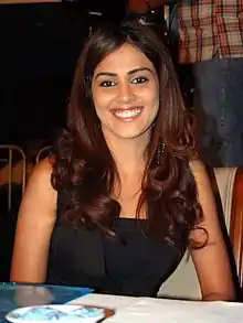 Genelia Deshmukh (née D'Souza; born 5 August 1987)[1][2] is an Indian actress and model who predominantly appears in Telugu, Hindi, and Tamil language films. After gaining wide attention in a Parker Pen commercial with Amitabh Bachchan, D'Souza began her acting career with the box-office hit Tujhe Meri Kasam in 2003.[3] She was recognized for her role in Boys the same year.