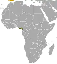 All genet species are indigenous to Africa. The common genet was introduced to southwestern Europe during historical times.[1] It was brought from the Maghreb to the Mediterranean region as a semi-domestic animal about 1000 to 1500 years ago, and from there spread to southern France and Italy.[44] In Africa, it inhabits wooded habitats north of the Sahara, in savanna zones south of the Sahara to southern Africa and along the coast of Arabia, Yemen and Oman.[45]