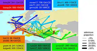 | Wikimedia Commons has media related to Genetic studies on European populations. |