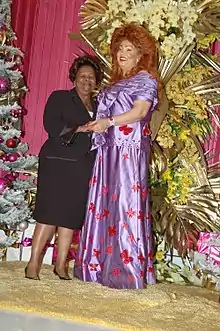 ![]() Tjoues (left) with First Lady Chantal Biya | |