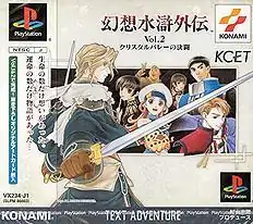 Gensō Suikogaiden (Japanese: 幻想水滸外伝) is a two volume series of spin-offs from the Suikoden series of role-playing video games. Suikogaiden Volume 1: Swordsman of Harmonia (幻想水滸外伝Vol.1 ハルモニアの剣士, Gensō Suikogaiden Vol.1 Harumonia no Kenshi) was released in the autumn of 1999; Volume 2: Duel at Crystal Valley (幻想水滸外伝Vol.2 クリスタルバレーの決闘, Gensō Suikogaiden Vol.2 Kurisutaru Barē no Kettō) was released in the spring of 2001. Both volumes are visual novels, rather than role-playing games the other Suikodens are known for. The games were only released in Japan and never officially translated into other languages.