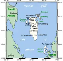 This article incorporates text from this source, which is in the public domain.{{cite encyclopedia}}: CS1 maint: postscript (link) - Faroughy, Abbas. 1951. The Bahrein Islands (750-1951): A Contribution to the Study of Power Politics in the Persian Gulf. New York: Verry, Fisher & Co. Pages 14-15.
