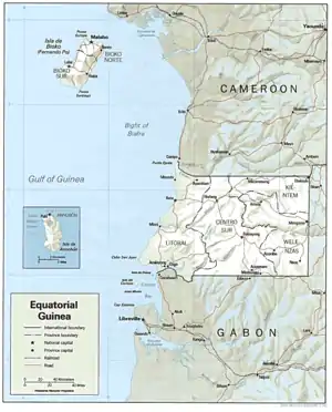 This is a list of the extreme points of Equatorial Guinea, the points that are farther north, south, east or west than any other location.