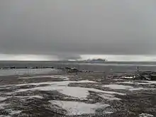 Heiss Island and Komsomol Island lie southeast of Zichy land. The Austria Strait separates Hall Island from Komsomol and the large Wilczek Island further to the northeast.[7] Heiss Island, also known as Kheysa or Chejsa island, is bound within latitude 80.55° N and longitude 57.50° E. It encompasses an area of 132.3 square kilometres (51.1 sq mi). Its mapped shore length is 55.2 kilometres (34.3 mi).[10] The abandoned Kheysa, Soviet rocket launching site, was located on this island.[16] In the Geophysical Year 1957–58, a new meteorological station, which over the years became the largest such station, was established on the banks of a small crater lake in the ice free zone of this island and named after Krenkel, a polar expedition hero. The station was closed in 2000 and abandoned buildings are still seen here. Another weather station was established in 2005. The island is named after the Arctic explorer, Isaac Hayes.[17]