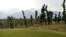 - The lesser Himalayas (central zone): The lesser Himalayas have a gradual elevation towards the Dhauladhar and the Pir Panjal ranges. The rise is more rapid in the Shimla hills, to the south of which is the high peak of Churdhar (3647 m). North of the river Sutlej, the rise is steady. The Kangra valley is a longitudinal trough which is at the foot of the Dhauladhar range. Dhauladhar (which means the 'White Peak') has a mean elevation of nearly 4,550 m. It has a rapid rise of 3,600 m above the Kangra valley. The largest of the lesser Himalayan ranges, the Pir Panjal, branches off from the Greater Himalayan range near the bank of the Sutlej. A number of glaciers exist and several passes lie across the Pir Panjal. The Rohtang Pass (3,978 m) is one of these.