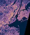 The city's land area is estimated to be 321 square miles (830 km2).[2] However, a more recent estimate calculates a total land area of 304.8 square miles (789.4 square kilometres).[3] The highest natural point in the city is Todt Hill on Staten Island, which at 409.8 ft (124.9 m) above sea level is the highest hill on the Eastern Seaboard south of Maine. The summit of the ridge is largely covered in woodlands as part of the Staten Island Greenbelt. Many places have been identified as the geographic center of the city, including a plaque in the center of Queens Boulevard and 58th Street, in Woodside, Queens.[4]
