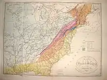 From the beginning of the United States, Georgia geology has been included in maps produced for the entire country. The first geological map of the U.S. was produced in 1809 by William Maclure.[11][12] In 1807, Maclure undertook the self-imposed task of making a geological survey of the United States. He traversed and mapped nearly every state in the Union. During the rigorous two-year period of his survey, he crossed and recrossed the Allegheny Mountains some 50 times.[13][14] The results of his unaided endeavor were submitted to the American Philosophical Society in a memoir entitled Observations on the Geology of the United States explanatory of a Geological Map, together with the nation's first geological map, which were published in the Society's journal Transactions,[15] This precedes William Smith's geological map of England by six years, although Smith's map was constructed using a different classification of rocks. Several reports used Maclure's geological map to accompany their description of the geology of the U.S. (Beaujour, 1814[16] and Marcou, 1858).[17] In 1816, within an elementary treatise of mineralogy and geology, Parker Cleaveland produced a geological map of the U.S.[18] In 1843, Charles Moxon produced a small-scale geologic map of the U.S., where Ami Boué produced a geological structure map of the globe.[19] In 1853, Marcou produced a geological map of the U.S. and the British provinces of North America.[20]