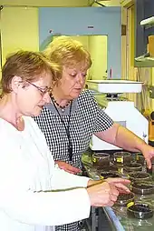 Geomicrobiology is the scientific field at the intersection of geology and microbiology and is a major subfield of geobiology. It concerns the role of microbes on geological and geochemical processes and effects of minerals and metals to microbial growth, activity and survival.[2] Such interactions occur in the geosphere (rocks, minerals, soils, and sediments), the atmosphere and the hydrosphere.[3] Geomicrobiology studies microorganisms that are driving the Earth's biogeochemical cycles, mediating mineral precipitation and dissolution, and sorbing and concentrating metals.[4] The applications include for example bioremediation,[5] mining, climate change mitigation[6] and public drinking water supplies.[7]