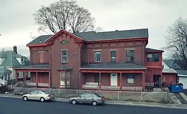 In addition to purchasing land for the company, Ewing purchased a section of land for himself in an area between the Highlands and downtown Holyoke. With a patchwork of parcels owned by others, Ewing's large tract of land extended from west of Linden Street to Northampton Street; as far south as the present location of Forestdale Cemetery, and as far north as Beacon Avenue.[31] Among his developments to that area, Ewing built four Italianate tenements along Dwight Street, connecting it from the Hadley Falls Company's grid to Northampton Street, a major thoroughfare.[14]