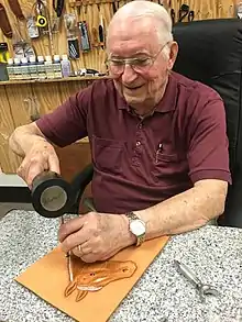 George Hurst (born 1933) is an American leather artist known for his contributions to leathercraft instruction.[1] With nearly 8 million views on his leatherworking tutorial videos on YouTube,[1] Hurst is recognized internationally as a teacher. His contributions to the leather industry over the last 50 years have been recognized with an Al Stohlman Award for Achievement in Leathercraft,[2] the Lifetime Achievement Award by the International Federation of Leather Guilds, and the Master Leather Artisan Award by the Academy of Western Artists.[3]