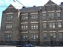 George L. Horn School is a historic school building located in the Harrowgate neighborhood of Philadelphia, Pennsylvania. It was built in 1902–1904, and is a three-story, five-bay, ashlar stone building in the Late Gothic Revival style. It features terra cotta and granite trim and a steeply pitched gable roof.[2]