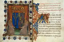 Neville took part in the proclamation of Edward IV as king, who confirmed his appointment as chancellor.[3][4] In 1463 he was employed on a diplomatic mission in France;[5] and in 1464, after taking part in negotiation with the Scots, Neville, after collation as Archdeacon of Carlisle circa 1463 became Archbishop of York on 15 March 1465.[6] He also served for many years as the Chancellor of the University of Oxford.