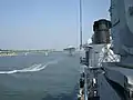 USS Elrod (FFG-55) about to pass through the George P. Coleman Memorial Bridge on the York River, Summer 2011