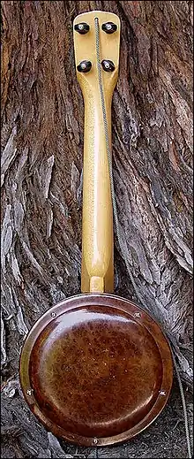 George Sandstrom's instruments had light California Maple necks with a medium dark California maple body. A few were made with the body, and resonator of burled California Redwood. A true California native.