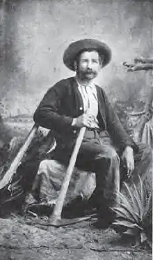 In 1880 pioneer photographer C. S. Fly often visited Bisbee on miners' paydays and he took a photo of Warren. The image was used as a model for the miner posing with long-handled spade on the Seal of Arizona.[2] His pauper's grave, originally only marked by a wooden plank saying "G.W. 24" in the Bisbee-Lowell Evergreen Cemetery was later commemorated by a large monument erected in his honor.[3]