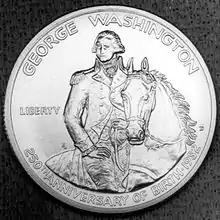 The George Washington 250th Anniversary half dollar is a commemorative coin that was issued by the United States Mint to commemorate the 250th anniversary of the birth of George Washington. The coin was authorized by Pub.L. 97–104.[1]