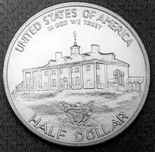 The George Washington 250th Anniversary half dollar was the first modern United States commemorative coin.[2] Production of traditional commemorative coins had previously ended in 1954 with the Carver-Washington half dollar.[3]