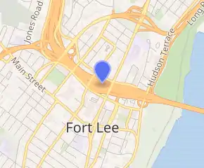 The George Washington Bridge Plaza, also known as GWB Plaza or Bridge Plaza, is the convergence of roads and highways around the George Washington Bridge toll plaza in Fort Lee, New Jersey, United States.[2] The plaza is located north of and parallel to Fort Lee's Main Street. The surrounding busy area is characterized by a mix of commercial and residential uses and an architectural variety that includes parking lots, strip malls, houses, gas stations, mid-rise office buildings and high-rise condominiums. Just to the east is Fort Lee Historic Park, Palisades Interstate Park and the bridge's western tower.
