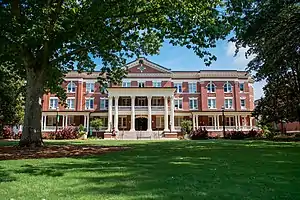 The central campus comprises about 43.2 acres (174,000 m2) in the center of Milledgeville, near the grounds of the former state capitol. The campus contains buildings of red brick and white Corinthian columns, representative of those constructed during the pre-Civil War Antebellum period, when Milledgeville was the capital of Georgia. Bell Hall and Russell Auditorium are credited to architect J. Reginald MacEachron. Atkinson Hall (1896) is listed on the National Register of Historic Places. Other historic buildings on the campus include Sanford Hall (1938), Russell Auditorium (1926), Ina Dillard Russell Art Museum (the original section of the library) (1932), Chappell Hall (1963) (on the site of an earlier Chappell Hall built in 1907), Parks Hall (1911), Terrell Hall (1908), Maxwell Student Union (1972), Beeson Hall (1937), Porter Hall (1939), Lanier Hall (1926), Ennis Hall (1920), and Herty Hall (1954 and expanded in 1972).[7]