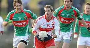 O'Kane and Derry again reached the National League final in 2009, but were defeated by Kerry.[12] Derry opened their 2009 Championship campaign with a win over Monaghan. However, they were defeated in the next round (Ulster semi-final) by Tyrone. They were drawn against Monaghan again in the first round of the Qualifiers and defeated them for the second time that year. Derry's 2009 campaign ended the following week with defeat to Donegal.