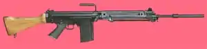 The G3 (which stands for Gewehr 3, or Rifle No. 3) is a family of select fire battle rifles manufactured by Heckler & Koch. It was adopted as the standard service rifle by the Bundeswehr in 1959 as a replacement for the G1, a modified version of the Belgian FN FAL, and served until 1997 when it was replaced by the G36. The G3 was chambered for the 7.62×51mm NATO cartridge.