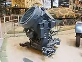 The 8 kilowatt, direct current generator that powered the searchlight was driven by a six-cylinder, BMW engine, of a type used in pre-war cars.