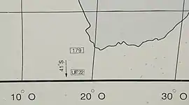 The submarine had a maximum surface speed of 20.8 knots (38.5 km/h; 23.9 mph) and a maximum submerged speed of 6.9 knots (12.8 km/h; 7.9 mph).[3] When submerged, the boat could operate for 121 nautical miles (224 km; 139 mi) at 2 knots (3.7 km/h; 2.3 mph); when surfaced, she could travel 12,750 nautical miles (23,610 km; 14,670 mi) at 10 knots (19 km/h; 12 mph). U-179 was fitted with six 53.3 cm (21 in) torpedo tubes (four fitted at the bow and two at the stern), 24 torpedoes, one 10.5 cm (4.13 in) SK C/32 naval gun, 150 rounds, and a 3.7 cm (1.5 in) SK C/30 with 2575 rounds as well as two 2 cm (0.79 in) C/30 anti-aircraft guns with 8100 rounds. The boat had a complement of fifty-five.[3]