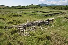 The excavations finally led to the discovery of a stone fort with a trapezoidal ground plan and unusual axis lengths of 320 m by 120 m, corresponding to an area of 3.84 hectares. The irregular form is probably due to the fact that the topographical conditions of the high terrace had to be taken into account when the fort was built.