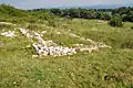 Directly west of the Principia, two larger buildings were uncovered, which were referred to as Horrea due to their massive supporting pillars. Their walls do not run parallel to the principia, but deviate by about three meters from the axial alignment to their total length. The first horreum, located directly next to the staff building, is 29 m x 17.50 m (= 507.5 sqm), a rather unusual size for this type of building. Although similarly spacious Horrea have also been proven in other auxiliary sites, it is always double Horrea, which is not indicated by any structural structures or other signs in Cigmău, so that a one-room large building must be assumed. The second Horreum, 28.50 m x 10.50 m (= 299.25 sqm), meets the usual standards.
