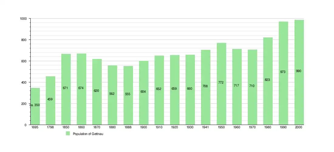Gettnau had a population (as of 2019) of 1,159. As of 2013, 16.9% of the population are resident foreign nationals. Over the last 3 years (2010-2013) the population has changed at a rate of 1.67%. The birth rate in the municipality, in 2013, was 11.6 while the death rate was 5.8 per thousand residents.[6] Most of the population (as of 2000) speaks German (89.0%), with Albanian being second most common (5.2%) and Portuguese being third (1.4%).