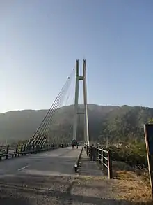Cable-stayed bridge over the Karnali River in Chisapani, western Nepal
