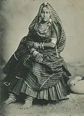 Historically, the gagra choli evolved from the three-piece attire worn by women in ancient India. The attire consisted of the antriya lower garment, the uttariya veil worn over shoulder or head and stanapatta a chest-band, which finds mentioned in Sanskrit literature and Buddhist Pali literature during the 6th century B.C.[6]