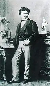 The reality is that Petrașcu visited Grigorescu very often, starting from 1894 to 1895, at his home, above the Altân pharmacy in Polonă Street, corner with Batiștei.[32] At the first visit, the painter was accompanied by Ipolit Strâmbulescu and often, after that, they helped the master to varnish the paintings for the preparation of some exhibitions.[35][34][36] Grigorescu showed the Romanian painter a lot of friendship, helped him receive a scholarship and was a good friend of Nicolae Petrașcu who wrote him a biography. Grigorescu and Gheorghe had a lasting friendship also due to the meetings in Câmpina, Agapia or Paris.[32] Consequently, the artist published several biographical details about Grigorescu under the pseudonym Sanzio.[37]