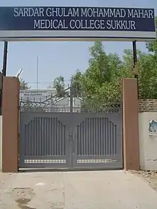 Ghulam Muhammad Mahar Medical College (غلام محمد مہر میڈیکل کالج) [1] or GMMMC in short is the sixth public sector Medical college under the Government of Sindh where 100 meritorious students of tagged districts, including Sukkur, Khairpur and Ghotki are getting education every year. It is named after Sindh politician Ghulam Muhammad Khan Mahar.