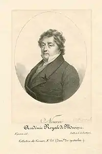 In Paris Meyerbeer had been asked by Louis Véron, the director of the Opéra, for a new work. At first he attempted to persuade Véron to accept the opéra-comique Le portefaix to a libretto by Scribe,[n 3] which he had been contracted to compose in early 1831; but Véron insisted on a full five-act piece. Together with Scribe, Meyerbeer reviewed many subjects before deciding, in 1832, on Les Huguenots. The contract which Meyerbeer signed with Véron contained a penalty clause if the work was not delivered by the end of 1833. When the time came and the opera was not ready, Véron claimed his 30,000 francs under this clause; Meyerbeer was perhaps unique amongst composers in being able to pay this. In fact Véron refunded the money under a further agreement, when the opera was delivered in late 1834; but Veron himself was replaced as director of the Opera by Henri Duponchel before Les Huguenots was premiered on 29 February 1836.[41] It was an immediate and immense success, its splendid staging and effects exceeding even those of Fromental Halévy's La Juive, which had premiered the previous year.[42] Berlioz called the score "a musical encyclopaedia", and the singing, especially of Nourrit and Falcon, was universally praised.[43] Les Huguenots was the first opera to be performed at the Opéra more than 1,000 times (the 1,000th performance being on 16 May 1906)[44] and continued to be produced up to 1936, more than a century after its premiere.[45] Its many performances in all other of the world's major opera houses give it a claim to being the most successful opera of the 19th century.