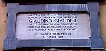 Plaque at the house where Gialdini lived in Pescia. It is unclear why it gives 1842 as his birthyear; all other sources, including many published before 1925, give 1843. - Eco della Lombardia (collection of 50 popular songs, edited by Giardini and Giulio Ricordi)