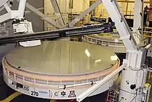 The mirrors are being constructed by the University of Arizona's Steward Observatory Richard F. Caris Mirror Lab.[17] The casting of the first mirror, in a rotating furnace, was completed on November 3, 2005, but the grinding and polishing were still going on 61⁄2 years later when the second mirror was cast, on 14 January 2012.[18][19] A third segment was cast in August 2013,[9][20] and the fourth in September 2015.[21] The casting of each mirror uses 20 tons of E6 borosilicate glass from the Ohara Corporation of Japan and takes about 12–13 weeks.[22] After being cast, they need to cool for about six months.[9]