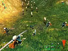 Planet Moon designed the structure of the single-player mode to be a gradual learning process for the players; the game would introduce new command sets to the players as they progress, and encourage them to repeat using the new commands for that mission.[19] From the start of the project, the team intended the controls to be simple, and mapped commonly used commands to a few keys. Focus groups consisting more than 25 testers went through this design to verify its ease.[2] Planet Moon aimed for a complex artificial intelligence (AI); computer-controlled characters would evade shots and take cover.[2] The enemy AI would plot its actions according to long-term goals.[15] The development team consulted Mark Frohnmayer, lead programmer of the multiplayer game Tribes 2, for advice on implementing the multiplayer portion.[8] To balance the characters in combat, Planet Moon focused on characteristics that could affect the fighting capabilities, instead of tweaking the damage output.[15] The team faced a tight schedule, and abandoned several features initially in the game. Early designs allowed players to change the landscape; they could gorge out water channels and isolate segments of the land by playing as Reapers.[15] The Kabuto character initially could bake mud into "mud shepherd" units and use them to defend its herd of food.[33]